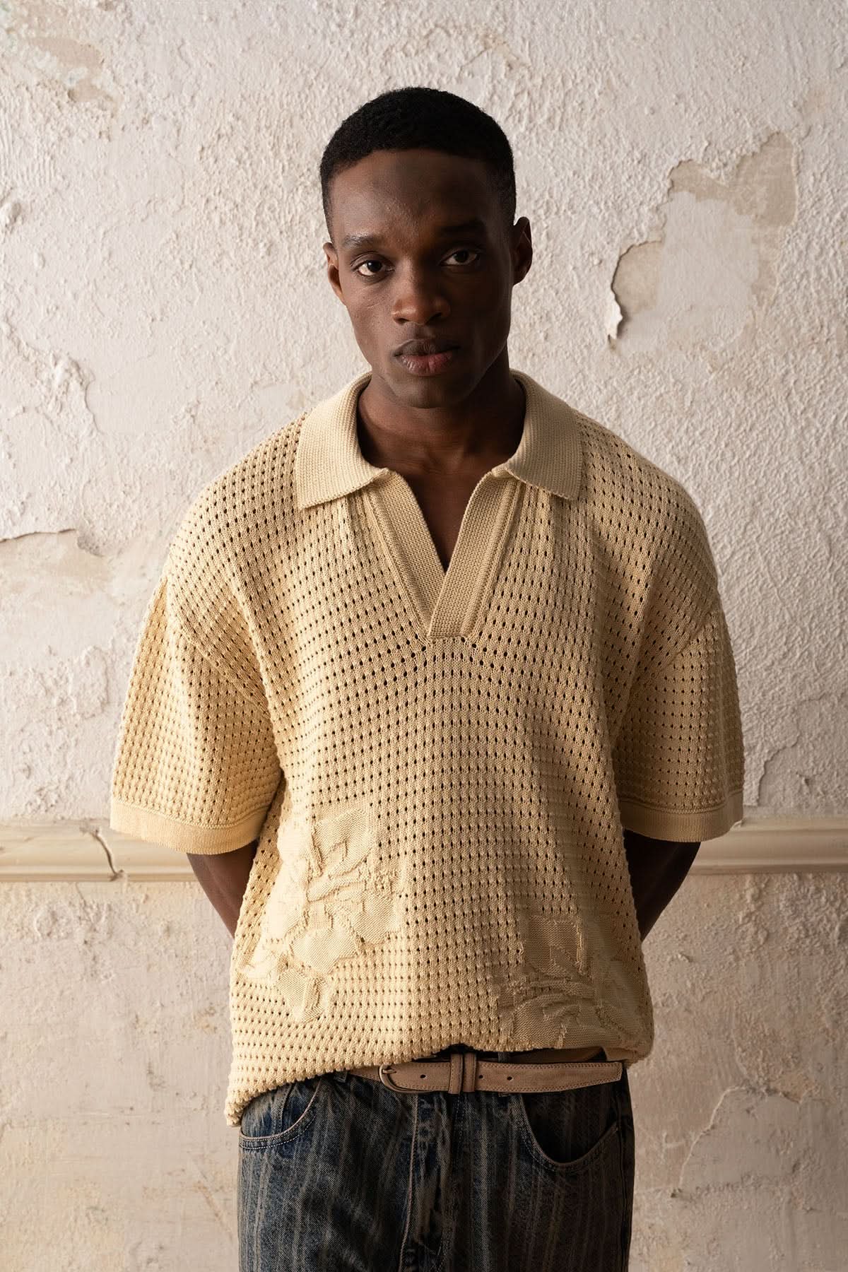 Crochet Knit Polo Shirt